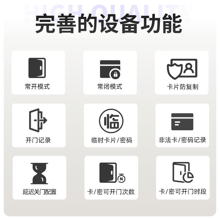 四川这款智能门锁提供室内门锁和防盗门锁两种选择,其中室内门锁尺寸为 2806521mm,适配 5050 锁体;防盗门锁尺寸为 3657021mm,适配 6068 锁体,可满足不同场景的安装需求。它采用铝合金一体成型搭配钢化玻璃面板打造,兼具坚固耐用的品质与简洁美观的视觉效果。门锁支持蓝牙无线通讯,解锁方式丰富多样,密码、卡片、蓝牙、钥匙四种方式随心选择,满足不同使用习惯与应急需求。其工作温度范围为 - 20~70℃,能适应多数地区的气候条件,采用碱性电池供电,安装更换便捷,是兼具安全性与实用性的门锁选择。